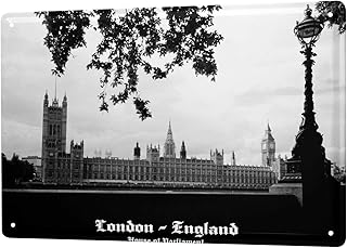 LEotiE SINCE 2004 Tin Signe Dave Butcher Sait Noir Photo Grande-Bretagne Londres Bâtiment du Parlement Big Ben Poster
