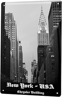 LEotiE SINCE 2004 Plaque en métal emaillee Noir Dave Butcher Photos USA New York cm Chrysler Building de Nuit Poster