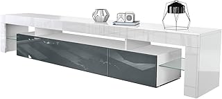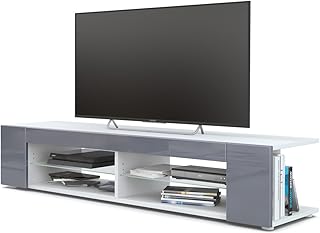 Vladon Meuble TV Armoire Basse Movie V2, Corps en Blanc Mat/Façades en Gris Haute Brillance