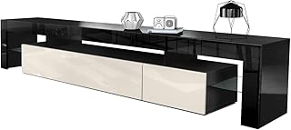 Vladon Meuble TV Bas Lima V2, Corps en Noir/Façades en Crème Haute Brillance