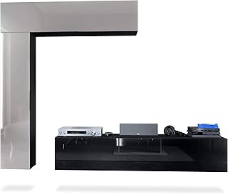 Vladon Combinaison Murale Armoire Taurito, Corps en Noir Mat/Façades en Blanc Haute Brillance et Gris Sable Haute Brillance