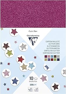 Clairefontaine 195598C - Un paquet de 10 feuilles de carton pailleté 21x29,7 cm 200g, couleurs assorties