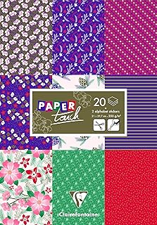 Clairefontaine 95240C - Un bloc de 20 papiers imprimés assortis 21x29,7 cm 200g (10 designs x 2 feuilles) + 2 planches de stickers alphabet + 2 planches d'étiquettes à découper, Shabby