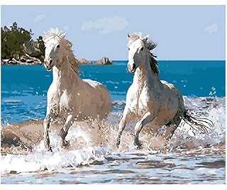 Peinture Numero Adulte Cheval Blanc Mer Peinture à l'huile Bricolage Numerique pour Enfants Seniors Debutants Peinture par Nombre Kits avec Brosse, 40x50cm, sans Cadre