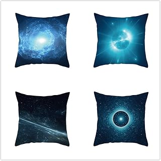 LOYYE 4 Pcs Housses de Coussin Planète Velours Carré Double Face Motifs Imprimés Décoratif Coussin Taie d'oreiller Housse de Coussin pour Voiture Canapé Lit Maison Décor E5618 45x45cm/17.6x17.6in