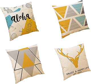 Wenlai Housse De Coussin Carré Housses de Coussin Home Décoratif Taie d'oreiller, Taies d'oreiller pour Canapé, lit, Voiture - 45 x 45 cm Motifs Géométrique Décoration de la Maison(Lot de 4)