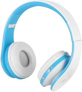 Casque sans Fil, Casque Bluetooth Stéréo Antibruit Casque avec Microphone 12 Heures d'Appel / 10 Heures de Musique Casque Audio Pliable pour PS4, iPhone, Ordinateur Portable, Tablettes.(Bleu+Blanc)
