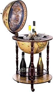Birendy Chariot de Bar élégant CG42001NN02 avec Bois d'eucalyptus Massif, Globe de 103 cm de Hauteur, Bar Bar Maison Globe, Bar, Globe, Cocktail, Table de Bar décorative