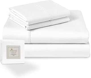 Pizuna 400 Fils Coton Drap lit 1 Personne Blanc, 4pc 100% Coton À Longues Fibres Parure de lit 90x200 Satin Doux Comprend 1 Drap-Housse, 1 Drap Plat & 2 Taies d'oreiller