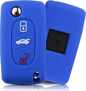 ASARAH Couvercle de clé en Silicone Premium Compatible avec Peugeot, Couvercle de Protection pour clés de Voiture, Couvercle pour Type de clé 3BKB - Bleu Vif