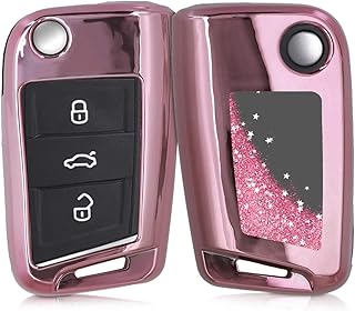 kwmobile Accessoire Clé de Voiture Compatible avec VW Golf 7 MK7 3-Bouton - Coque de Protection en Silicone - étoiles et Paillettes Fuchsia-Rose métallique