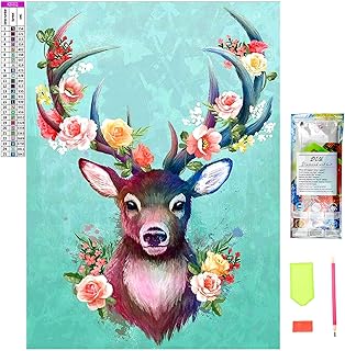 WELLXUNK® 5d Kit De Peinture Diamant, Couleur Fleurs Cerf Diamant Peinture, DIY Diamant Peinture Plein Forage Broderie Diamant kit Complet Artisanat Point De Croix Chambre Salon Décoration Murale