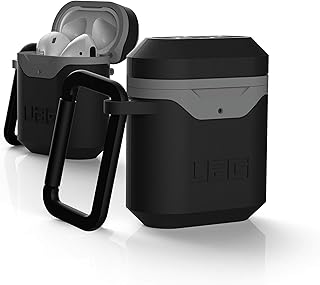 Urban Armor Gear Hardcase pour Apple Airpods de 2ème et 1ère génération (2019 et 2016) - Coque Robuste (Compatible Le Chargement sans Fil, résistant aux Chutes, Mousqueton) Noir/Gris