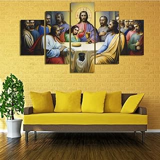 CGHBDOP Impressions sur Toile Modulaire Toile Mur Art Peinture 5 Panneaux Jésus Dernière Cène Photos HD Impressions Affiches Salon Décor À La Maison Cadre