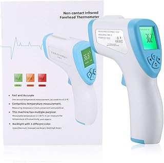 Benkeg Thermomètre infrarouge sans contact. Mesure de la température du front LCD. Écran LCD à trois couleurs avec rétro-éclairage à 32 couleurs. Enregistrement ℃/℉. Alarme acoustique.