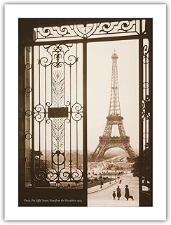 Paris, France - Tour Eiffel - Vue du Trocadéro, Palais de Chaillot - Affiche Voyage c.1925 - Prime Papier de Bambou Impression d'art 43x56cm