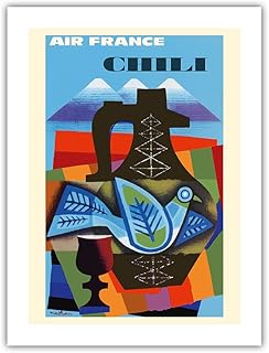 Chili - Air France - Affiche Avion de Jacques Nathan-Garamond c.1962 - Prime Papier de Bambou Impression d'art 43x56cm
