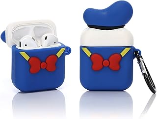 YIGEYI Airpods Étui en Silicone Compatible avec Les Airpods 1 et 2 Case Couverture de Dessin Animé 3D Mignon Drôle [Série Légère D'anime DSN] (Donald Duck Back)