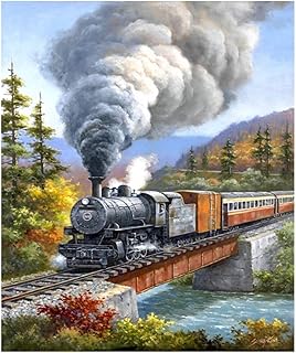 5D DIY Peinture en Diamant Complet Kits Paysage de train Full Cristal Strass Point de Croix Broderie Diamant Art Pour Adultes Enfants la Maison Salon Wall Decor Diamond Painting Round Drill 45x60cm