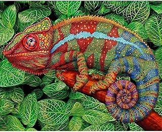 DIY 5D Diamant Peinture Kit Complet Full Drill Diamond Painting Caméléon Strass Broderie Point de Croix Adultes Enfant Diamant Art Home Décoration Diamant Rond 30x40cm